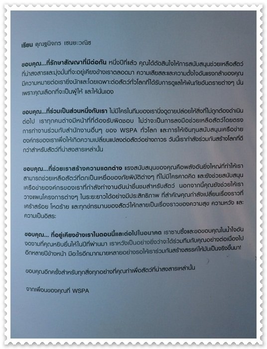 คอกสายรุ้งเข้าร่วมเป็นสมาชิกองค์กรพิทักษ์สัตว์แห่งโลก World Society for the Protection of Animals (WSPA)